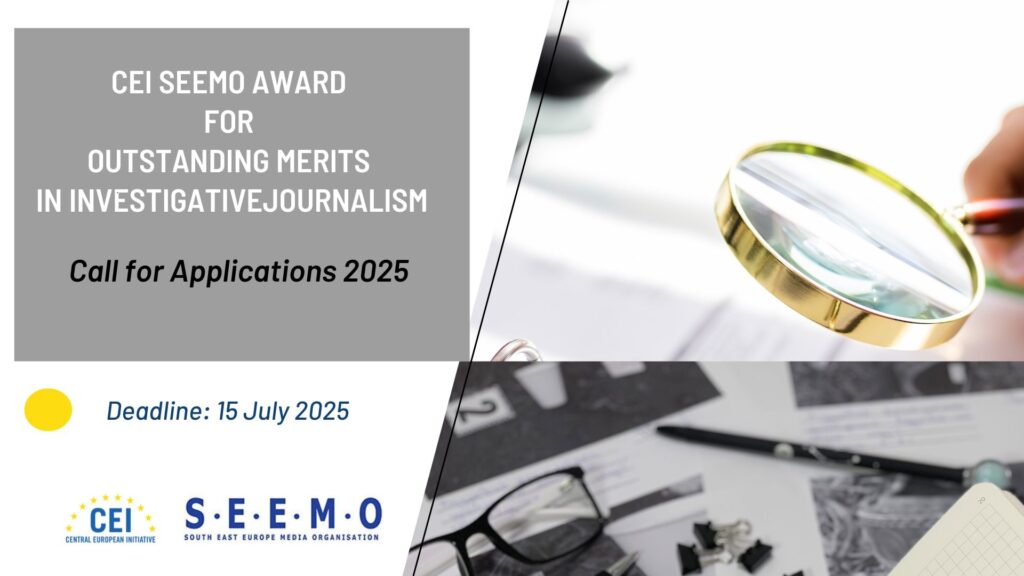 CALL FOR APPLICATIONS 2025: CEI SEEMO Award for Outstanding Merits in Investigative Journalism